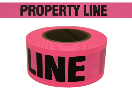 Presco Vinyl Flagging, “PROPERTY LINE”, Pink Glo. This flagging tape is ideal for surveyors, contractors, builders, and property owners. This flagging tape repeats “PROPERTY LINE” message in all caps throughout the entire roll. This property line flagging comes in Pink Glo. Fluorescent color that is easily identified and visible from long distances. It can identify test areas, dangerous sites, boundaries, and more. 2-mil strength with excellent colorfastness. 1-1/2˝ W x 150´ L. Note: Different flagging types cannot be combined for price breaks.